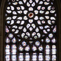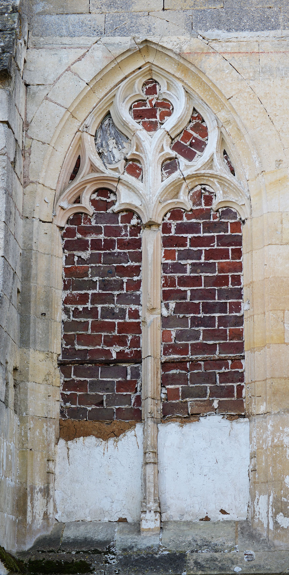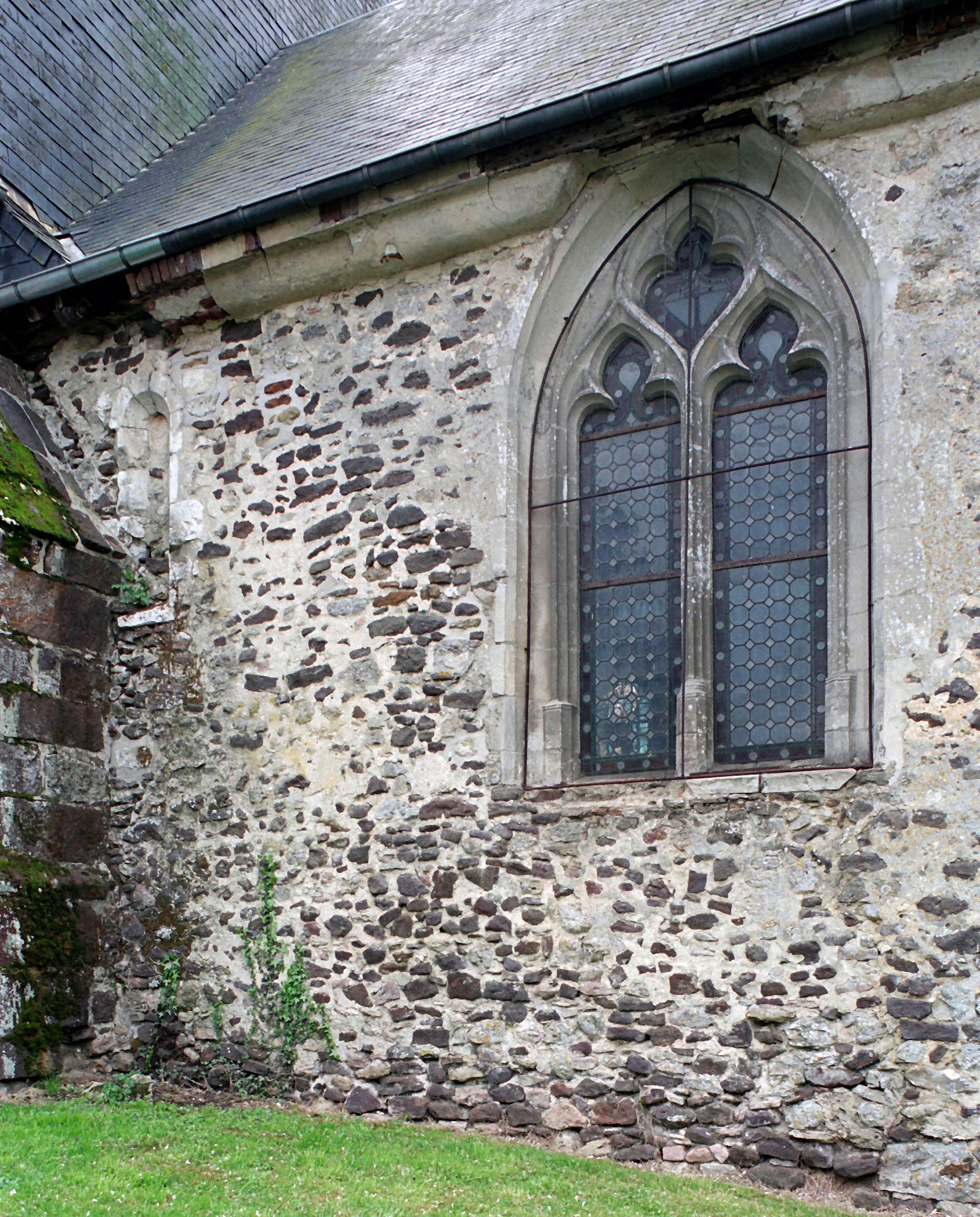 Fenêtre flamboyante réaménagée dans le mur est du choeur roman (2015)
