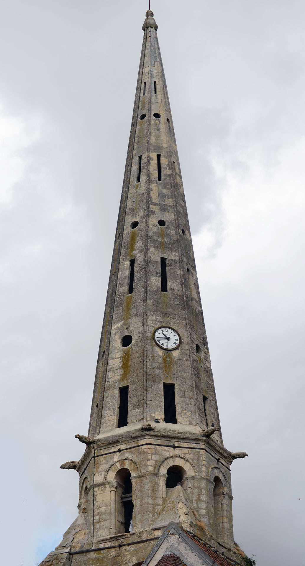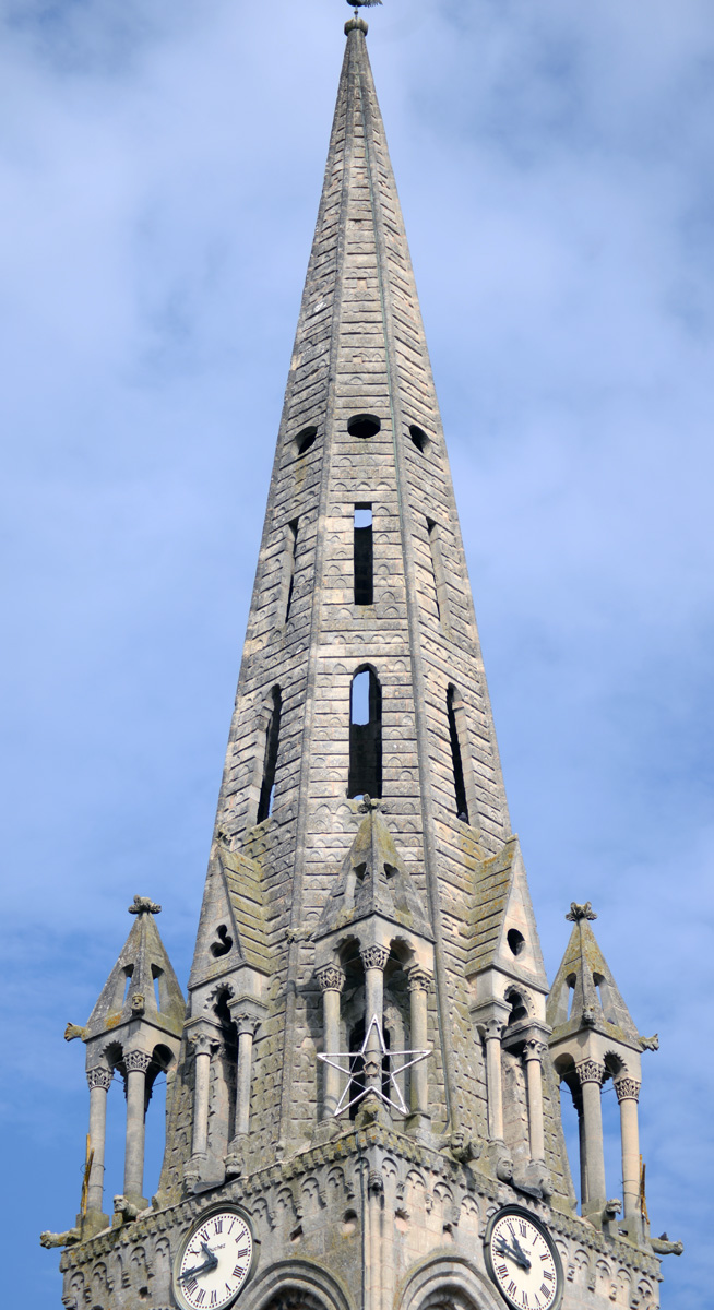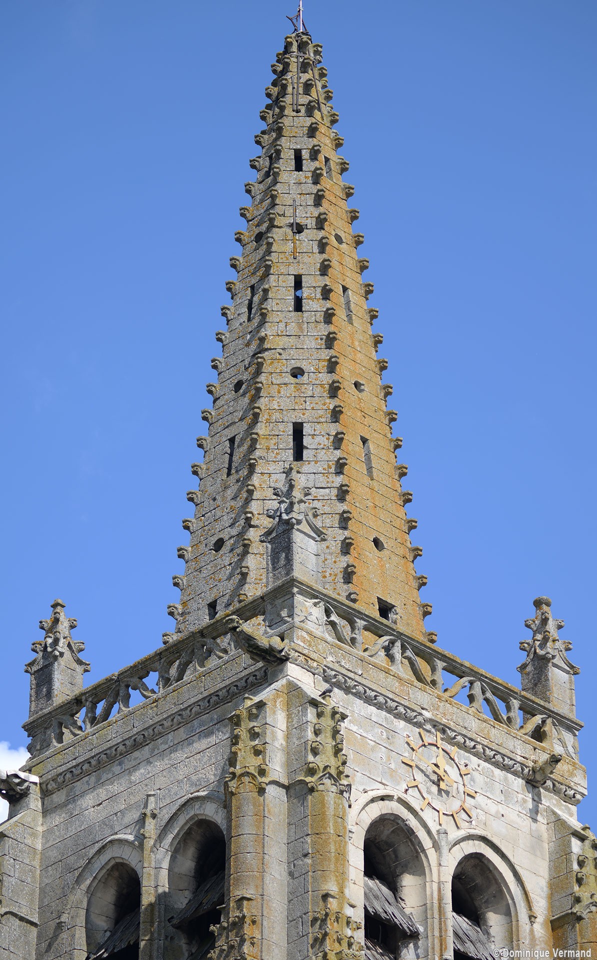 Les parties hautes du clocher et la flèche vues du sud (2015)
