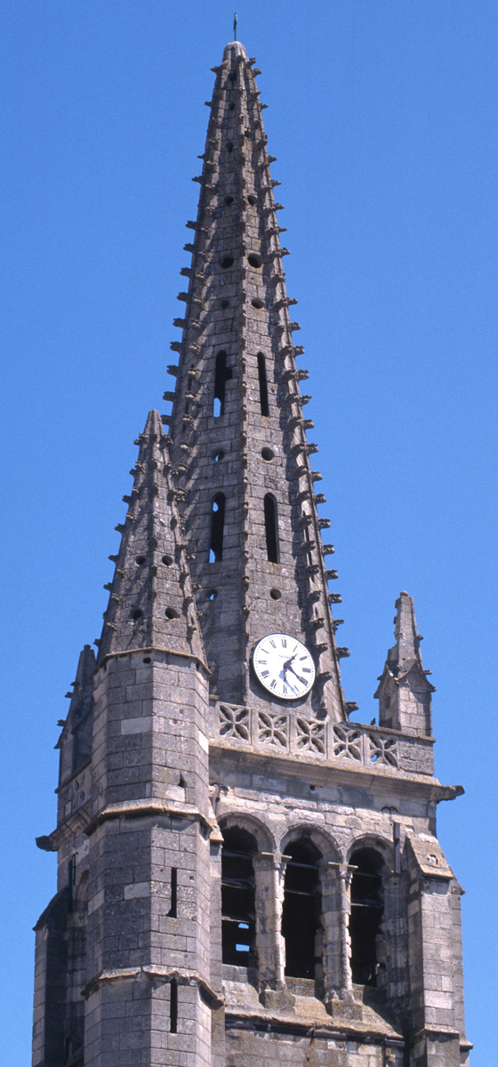 Le dernier étage du clocher et la flèche vus du sud-ouest (1997)