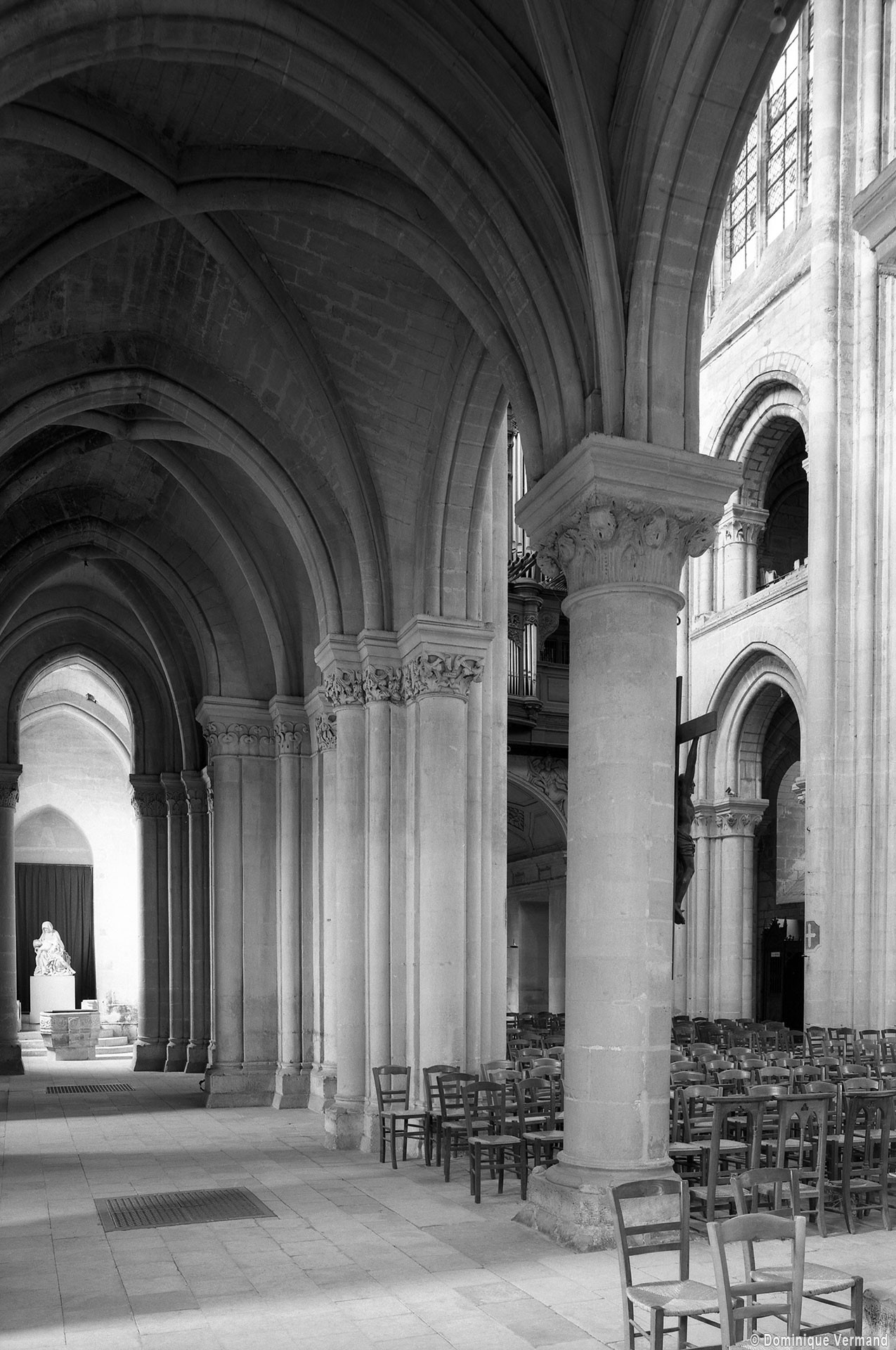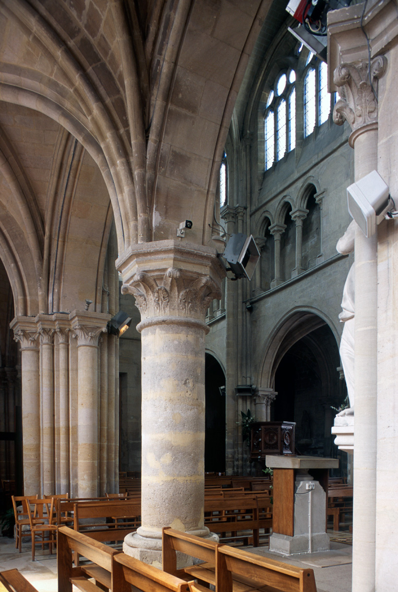 Les arcades du mur gouttereau sud de la nef vues vers le nord-est depuis le bas-côté sud (1997)