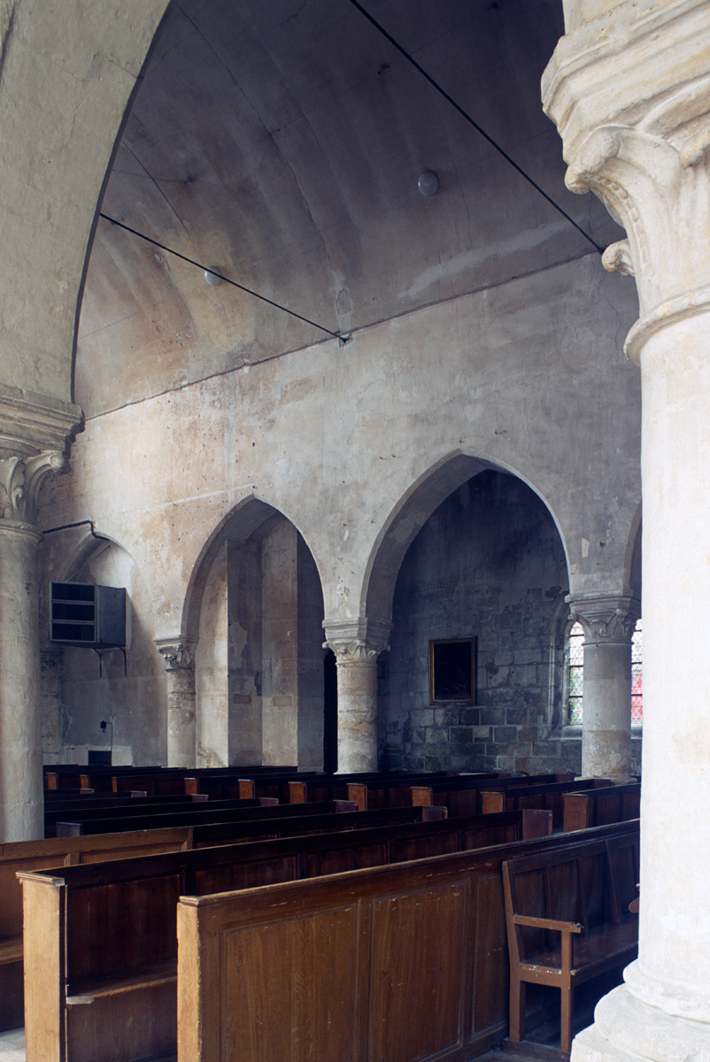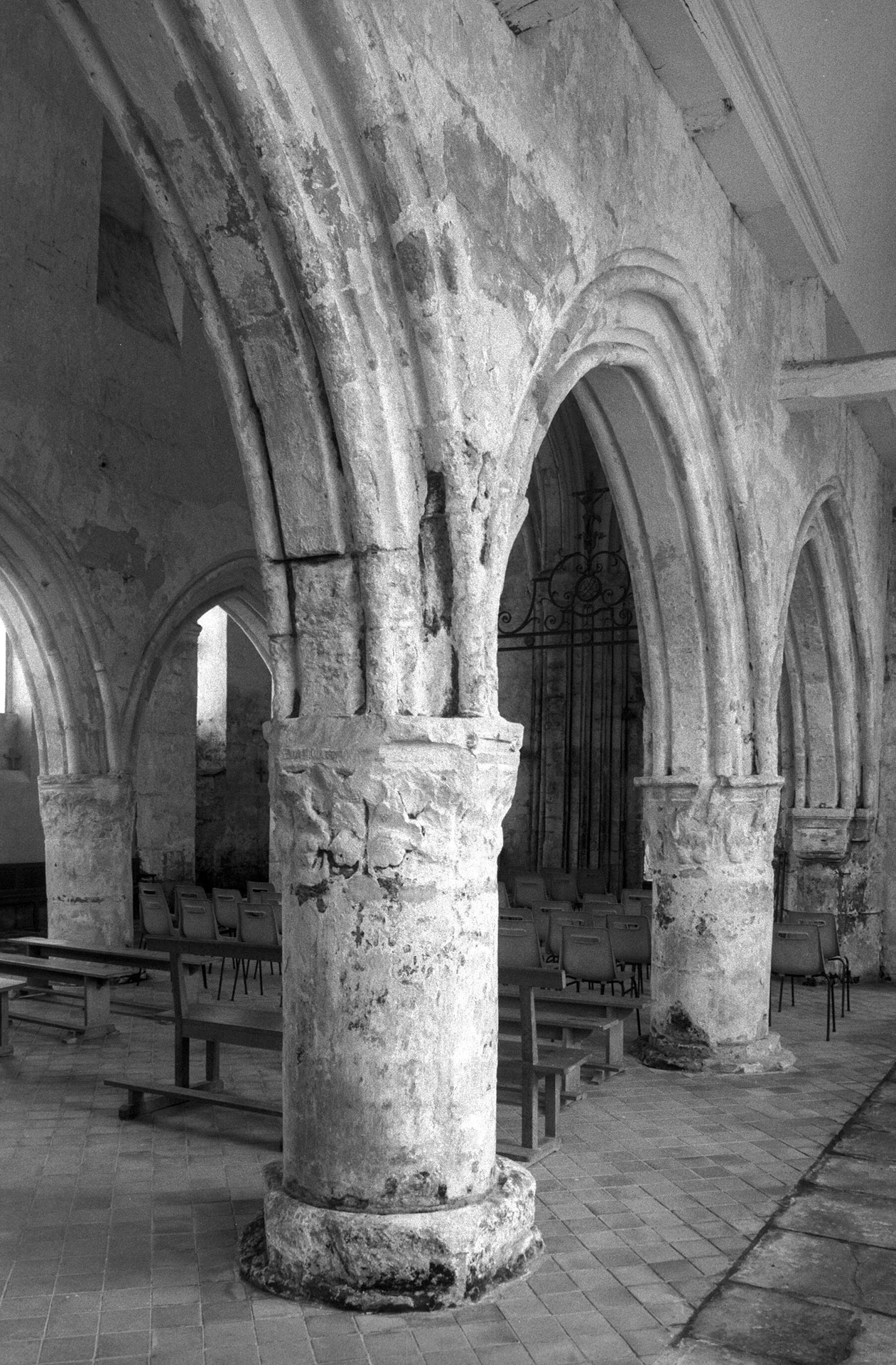 Les arcades de la nef vues vers le nord-est depuis le bas-côté sud (1995)