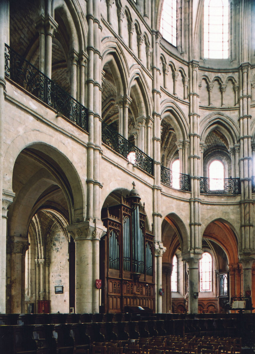 L'élévation du mur gouttereau nord de la nef vu vers le nord-ouest depuis le triforium du bras sud du transept