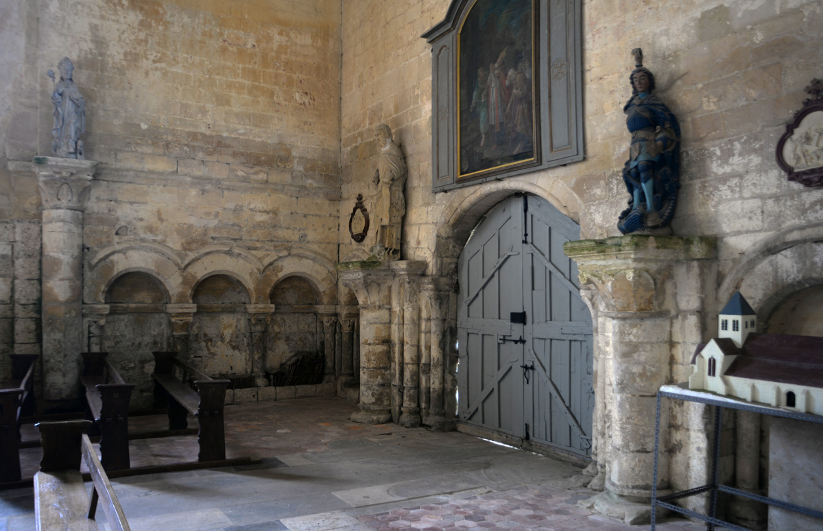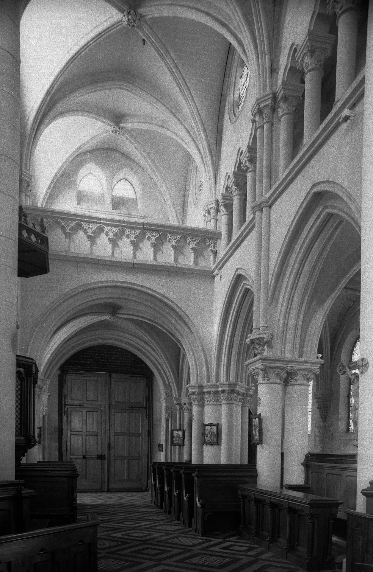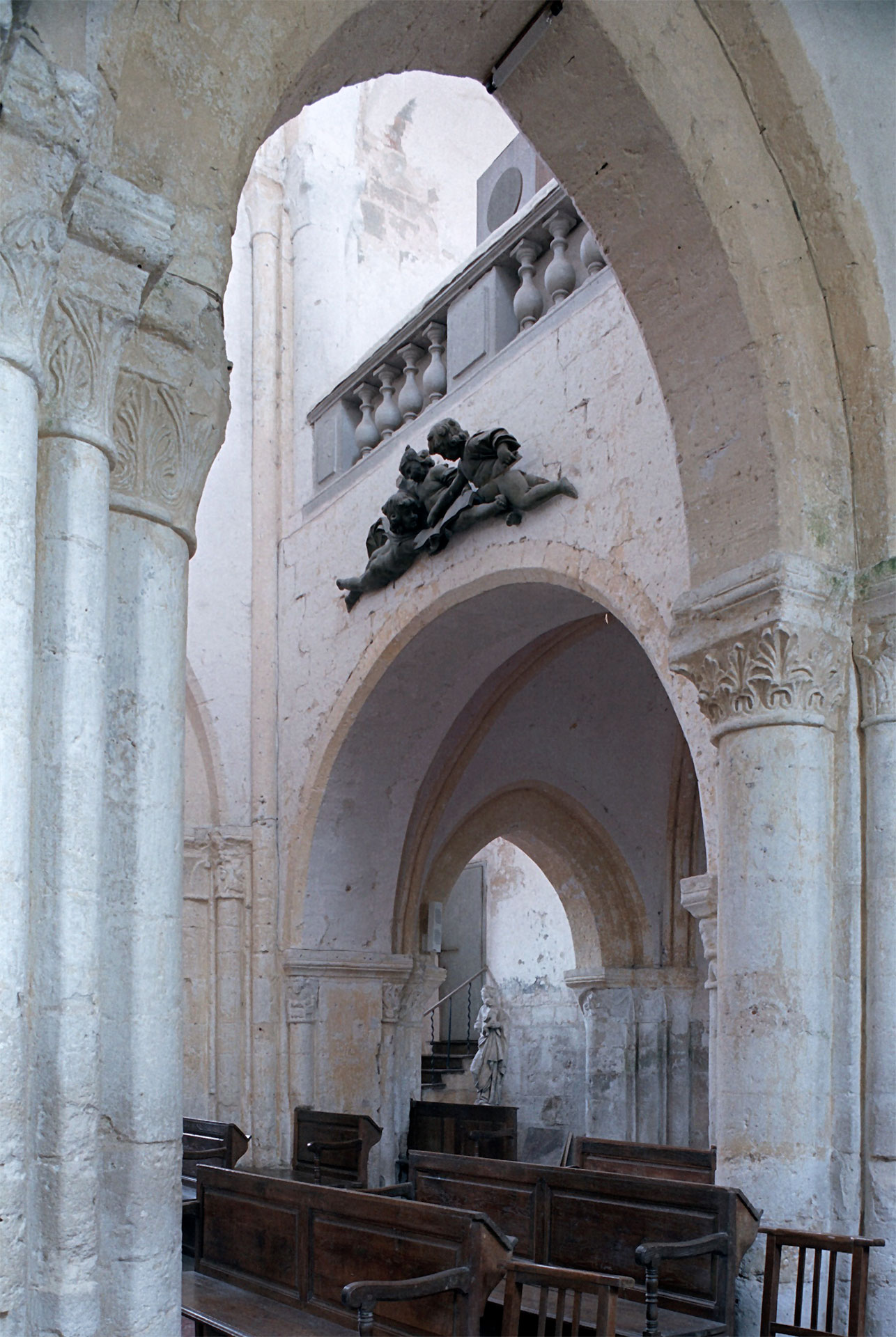 La première travée de la nef avec la tribune vue vers le sud-ouest depuis le bas-côté nord (2001)