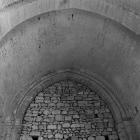 Le faux croisillon à l'angle nord de la nef et du choeur vu vers le nord-ouest (1994)