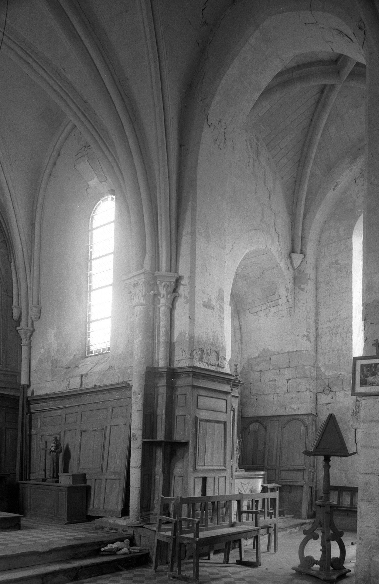 Vue partielle du choeur et de la chapelle nord depuis le croisée du transept vers le nord-est (1979)