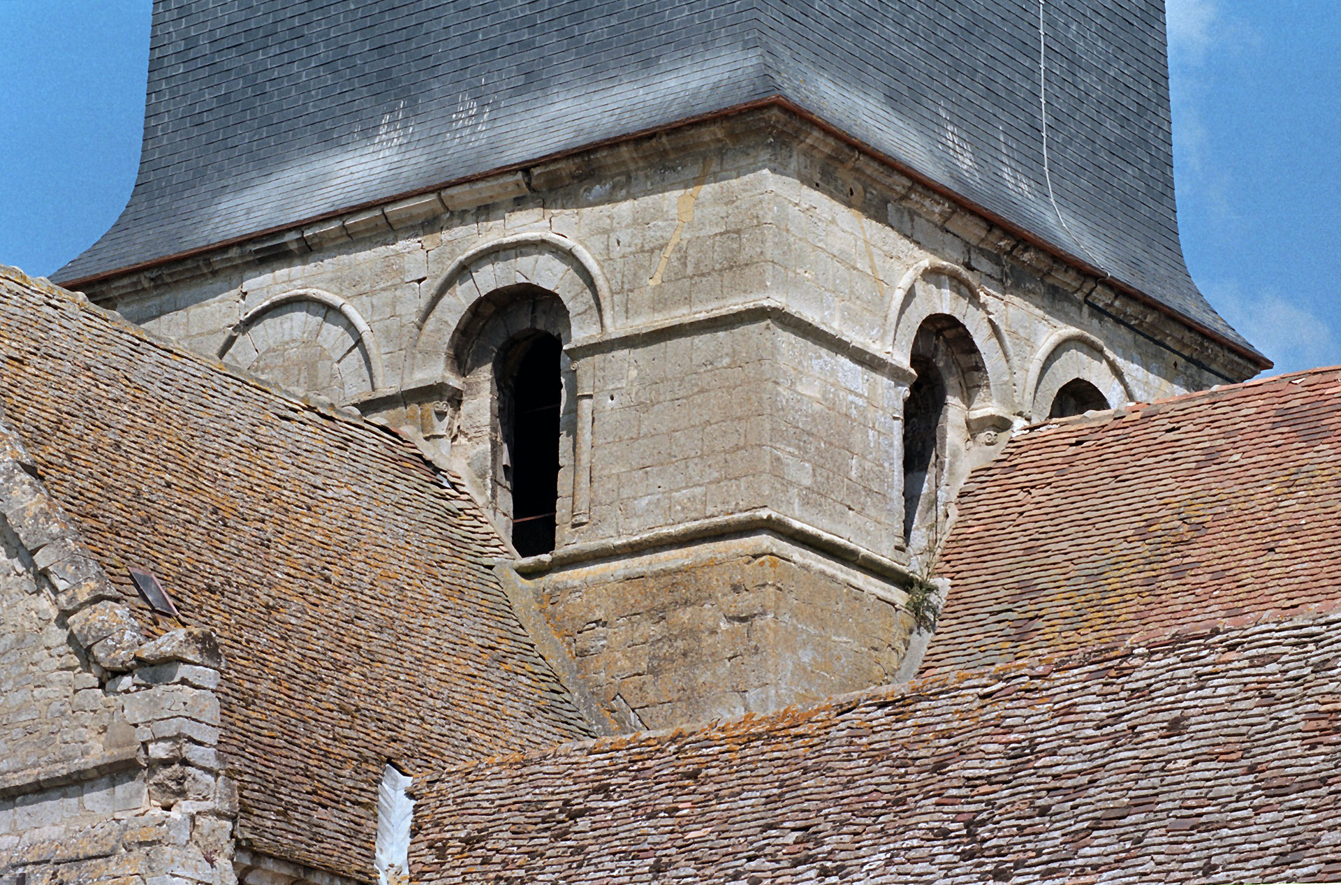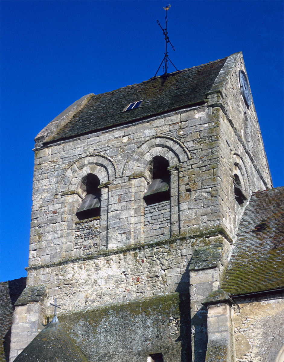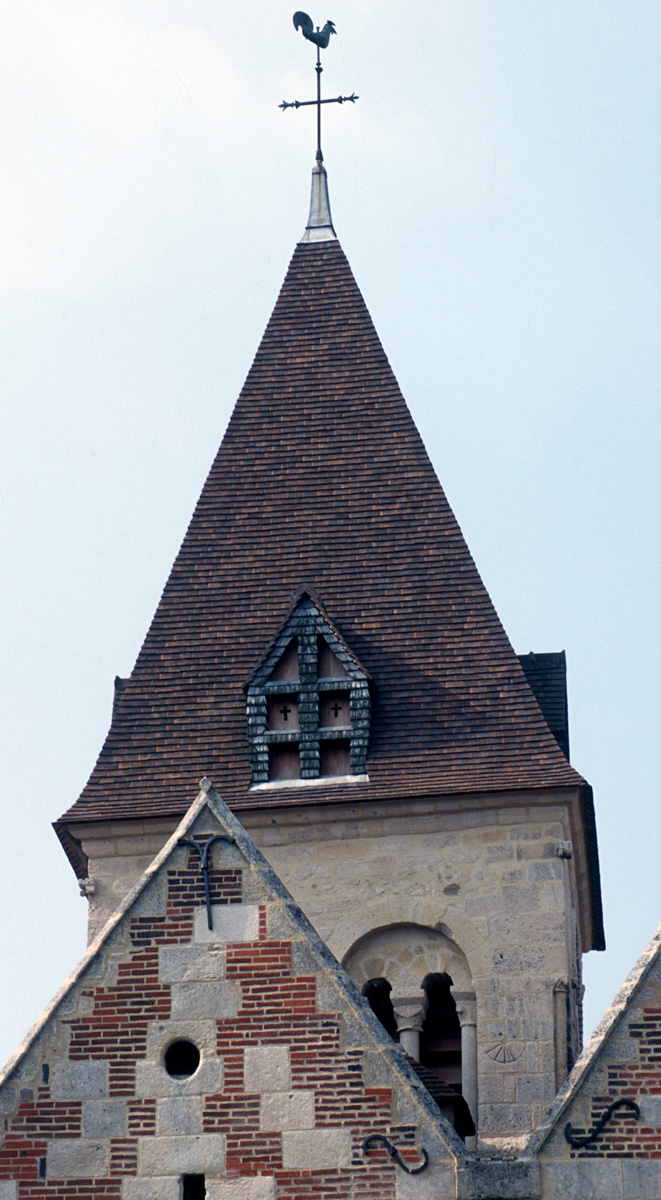 Les étages supérieurs du clocher-porche vus du sud-ouest (1995)