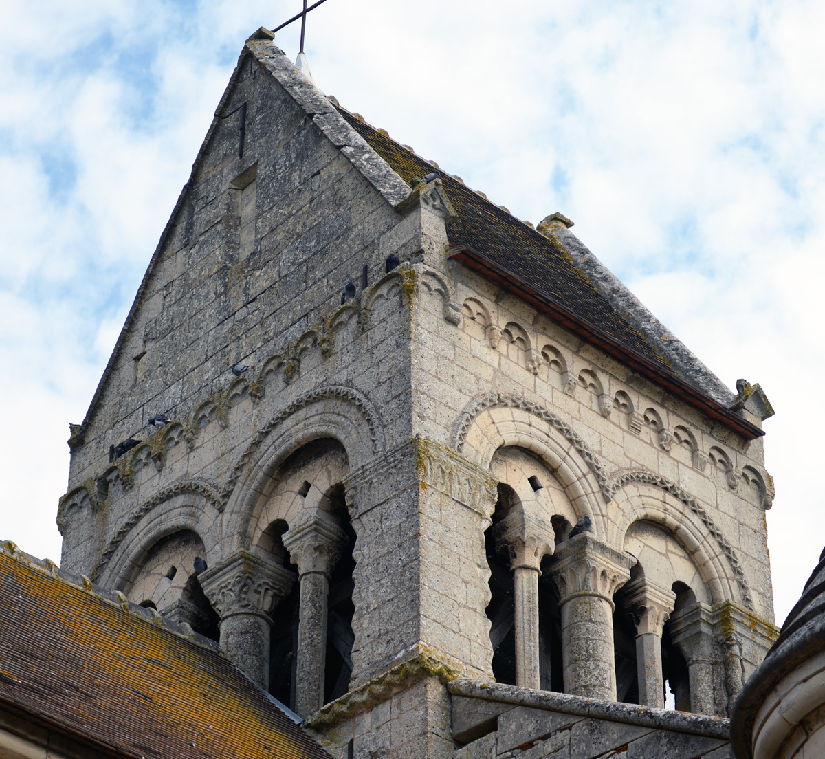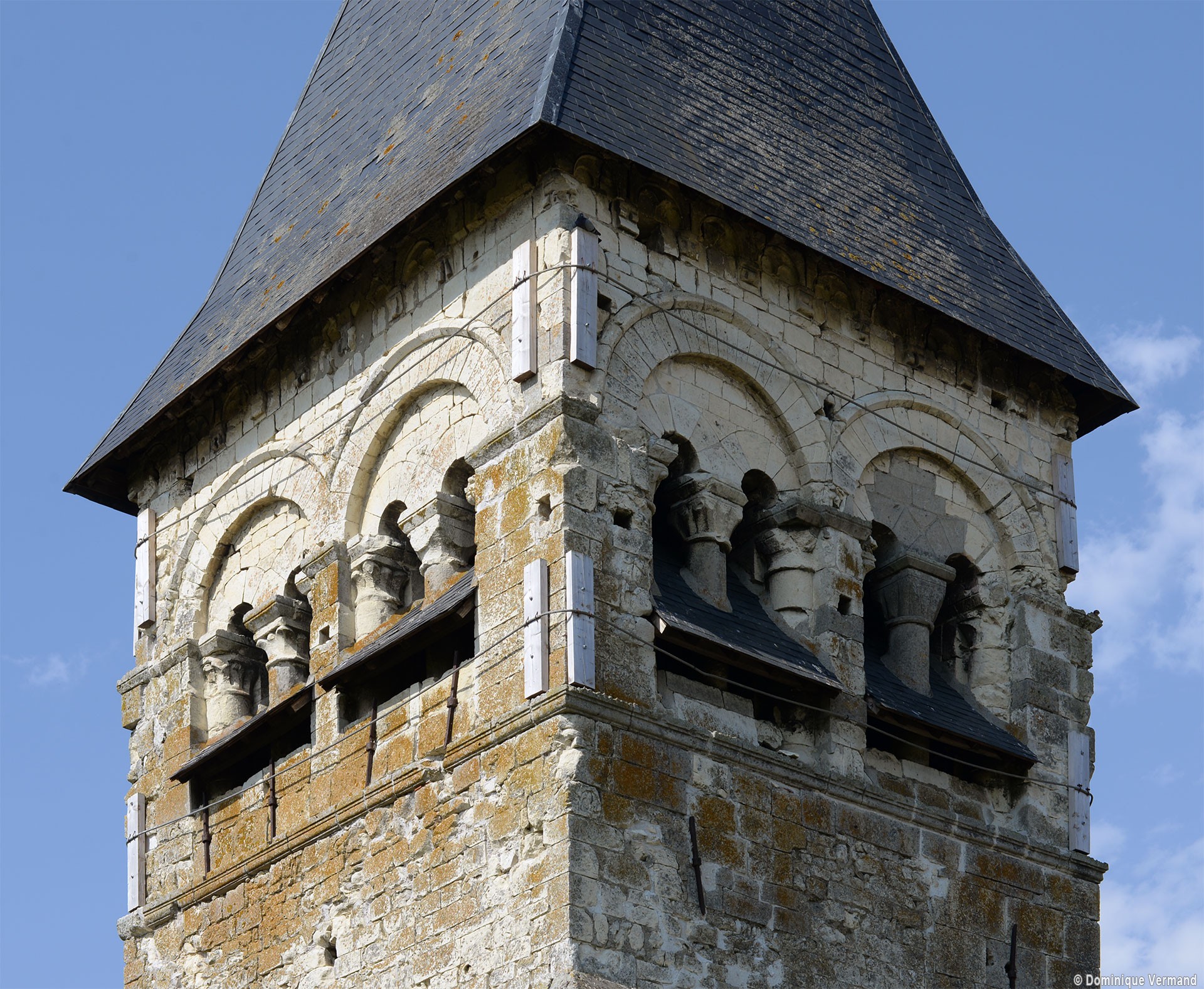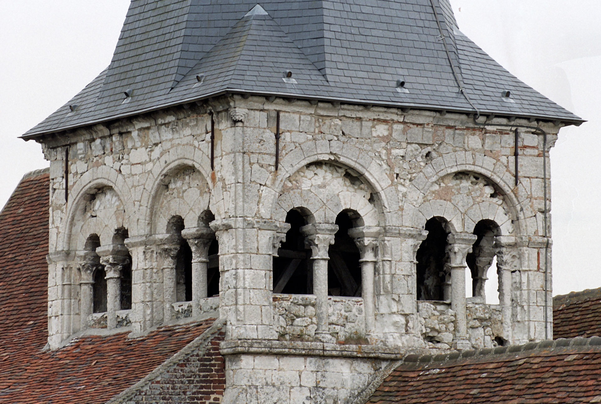 Les étages supérieurs du clocher-porche vus du sud-ouest (1995)