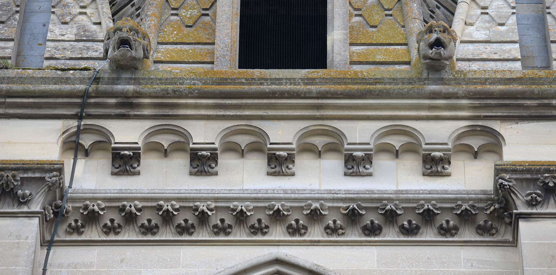 Détails et corniche beauvaisine de la face sud du clocher (2015)