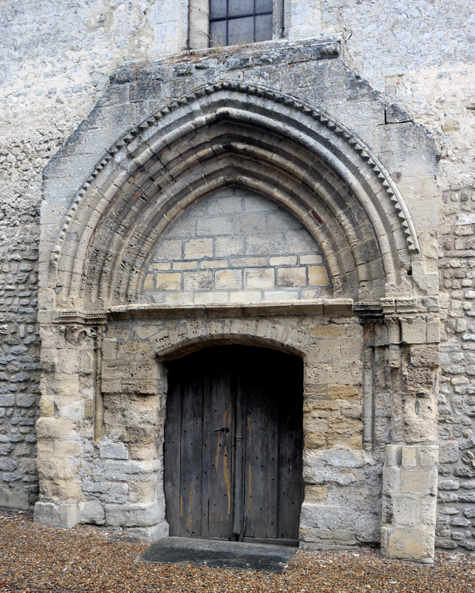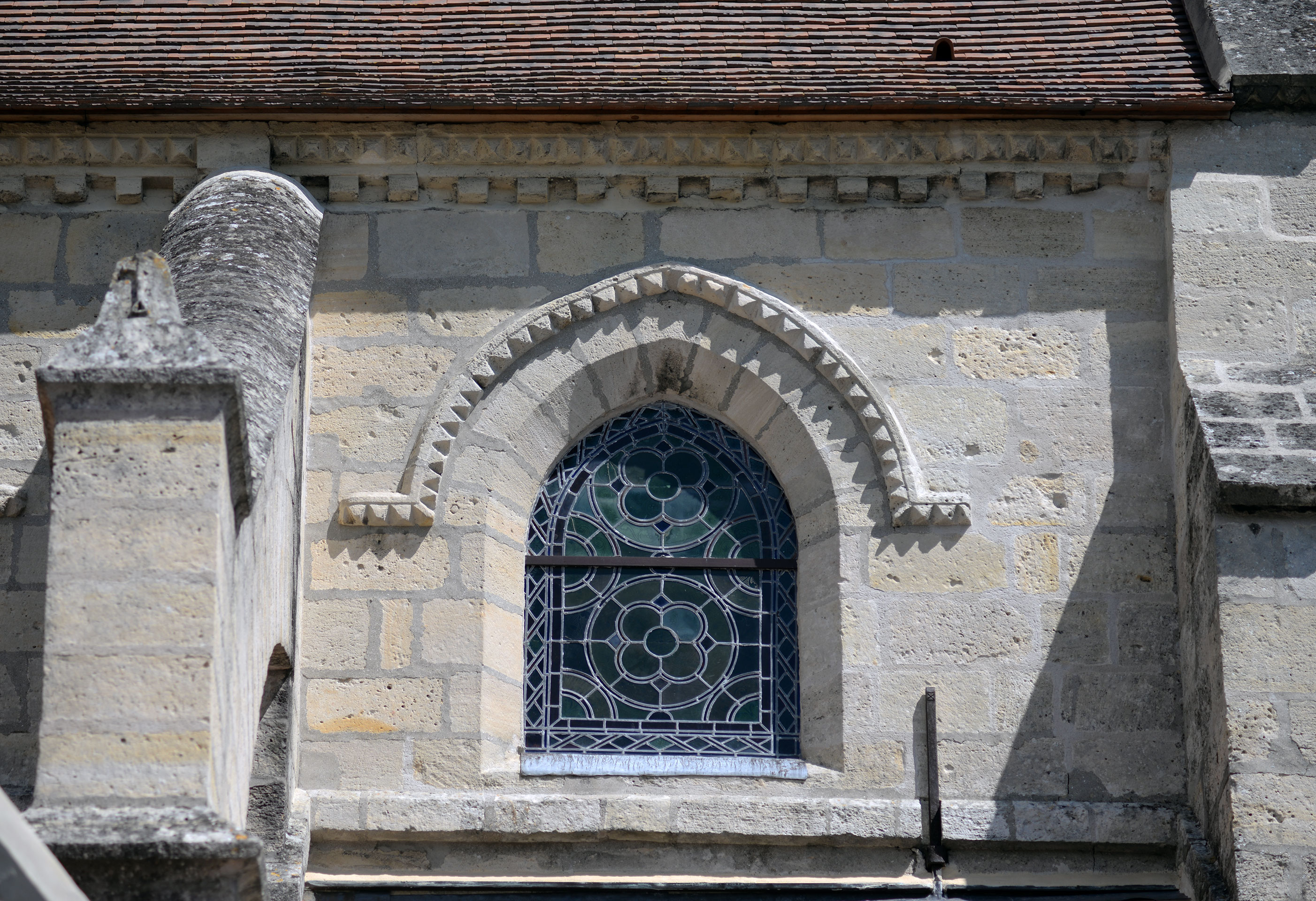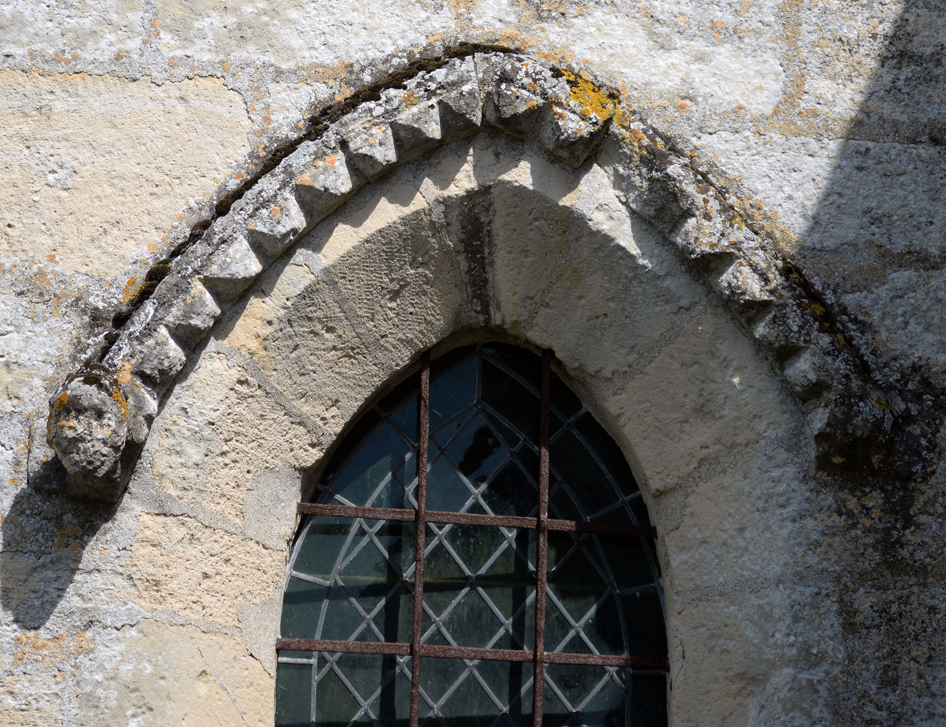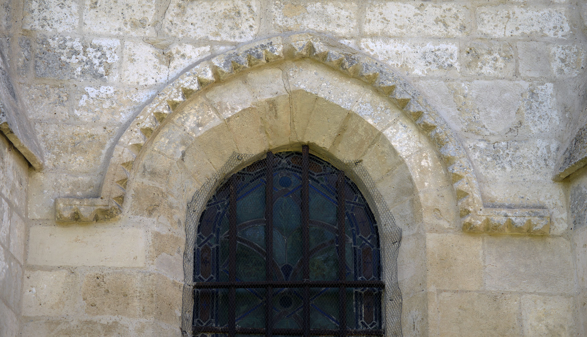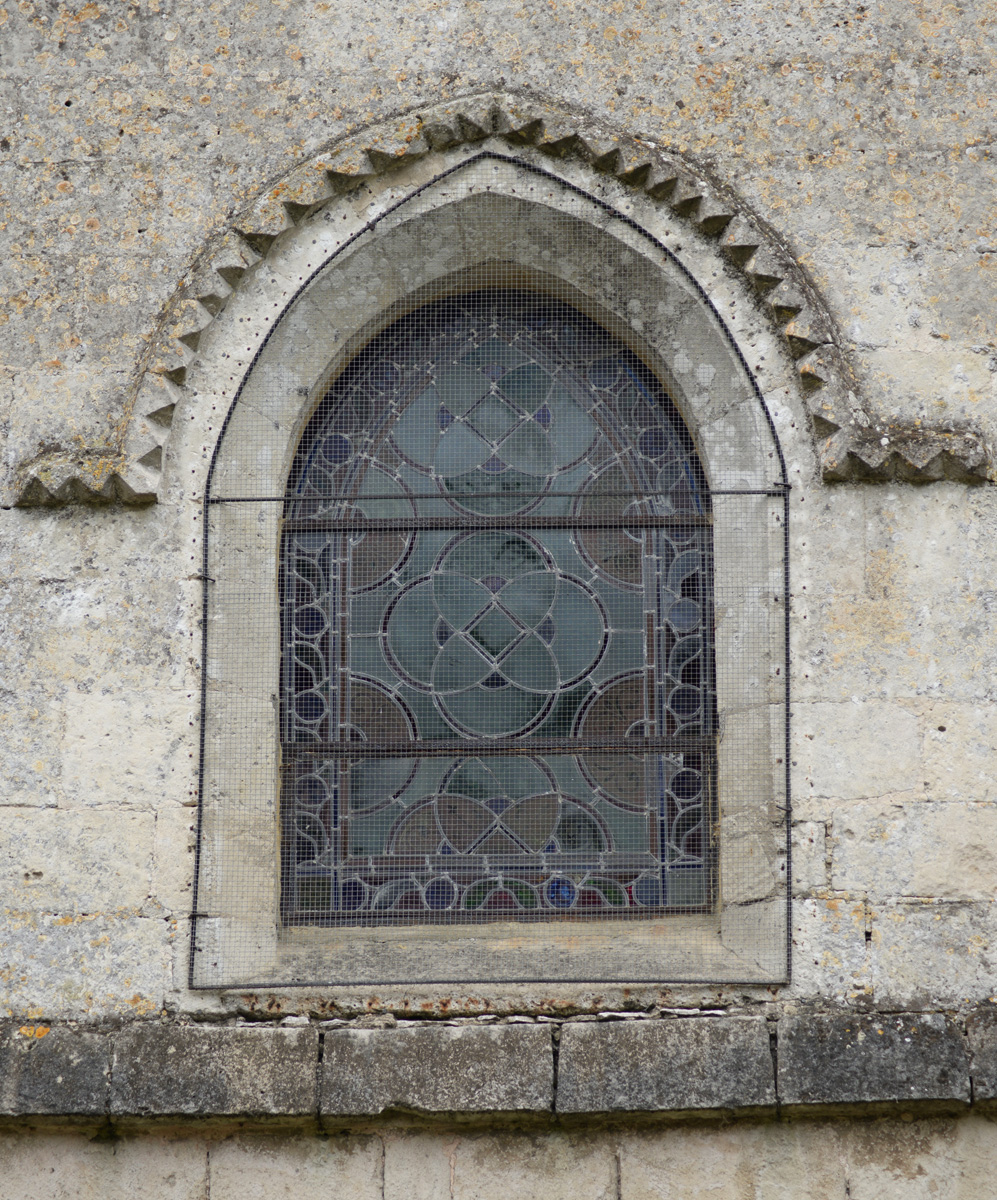Décor de pointes de diamant à la fenêtre ouest de la chapelle nord (2017)