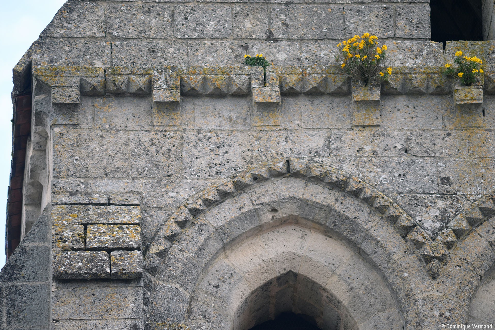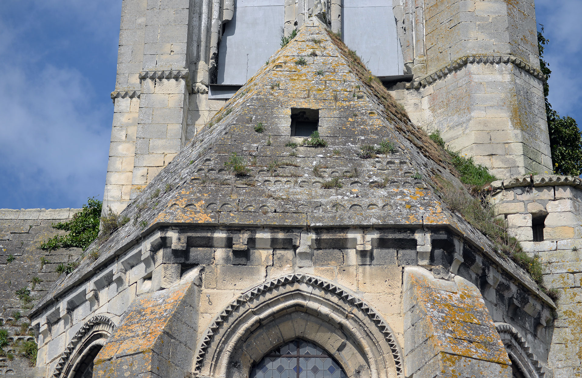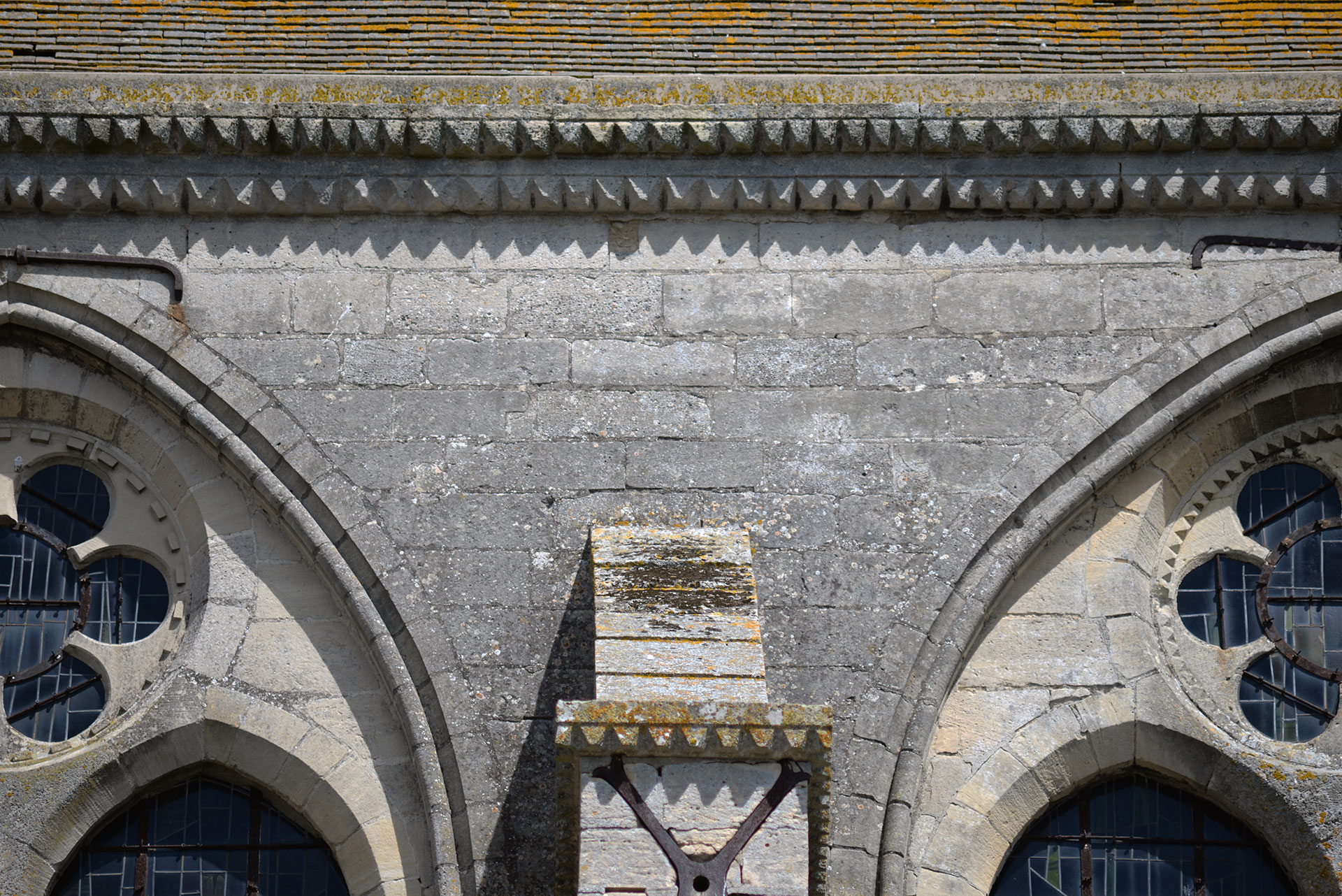 Décor de pointes de diamant et corniche du mur sud de la nef (2019)