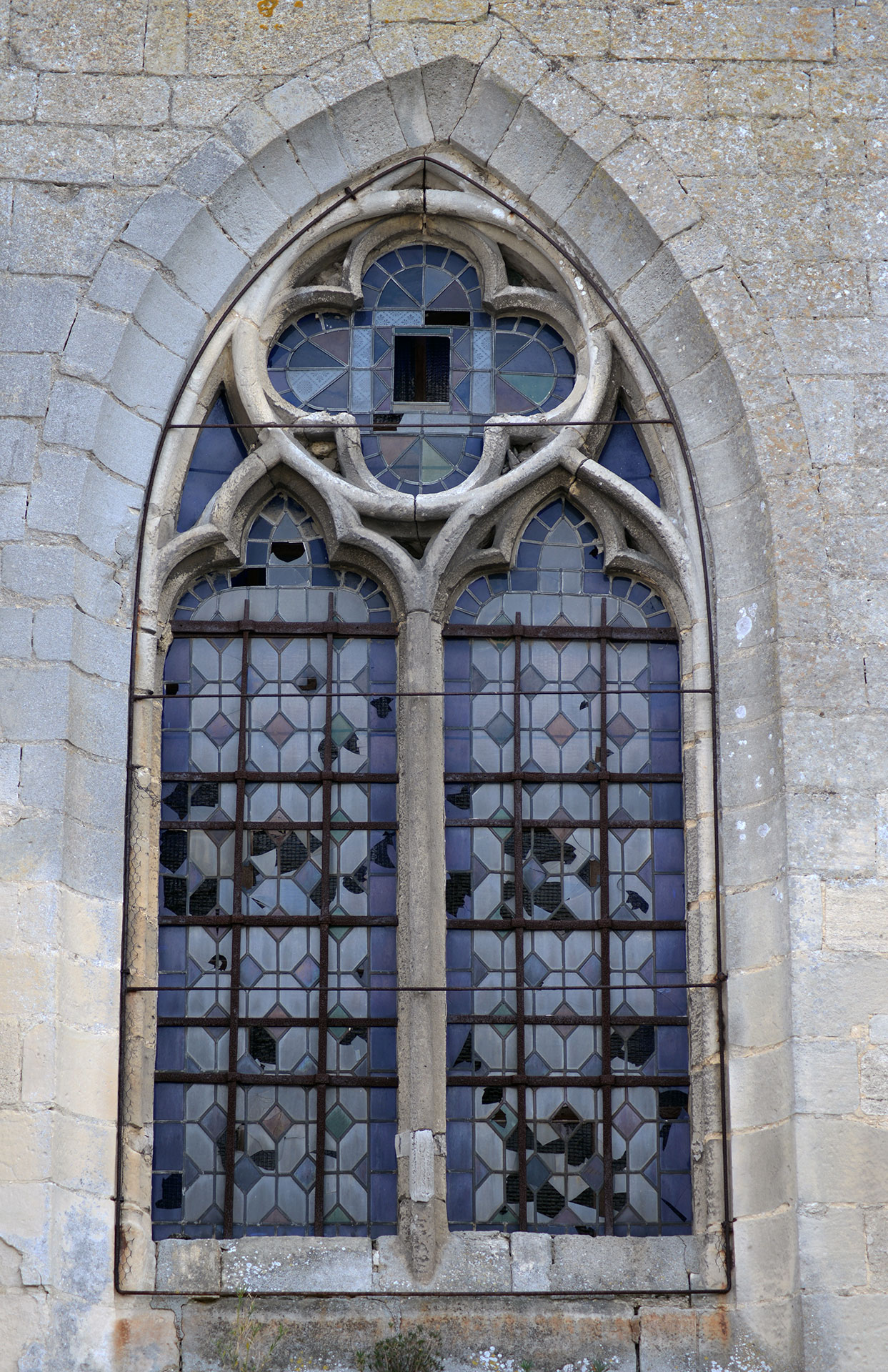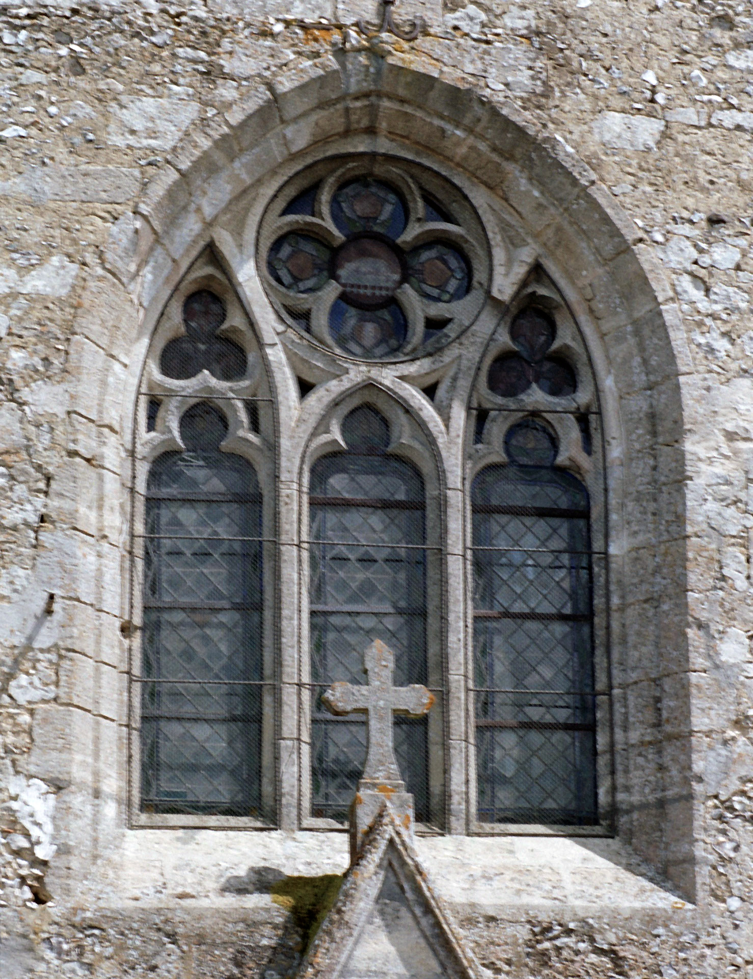 La fenêtre - très restaurée - du chevet de l'église (2017)