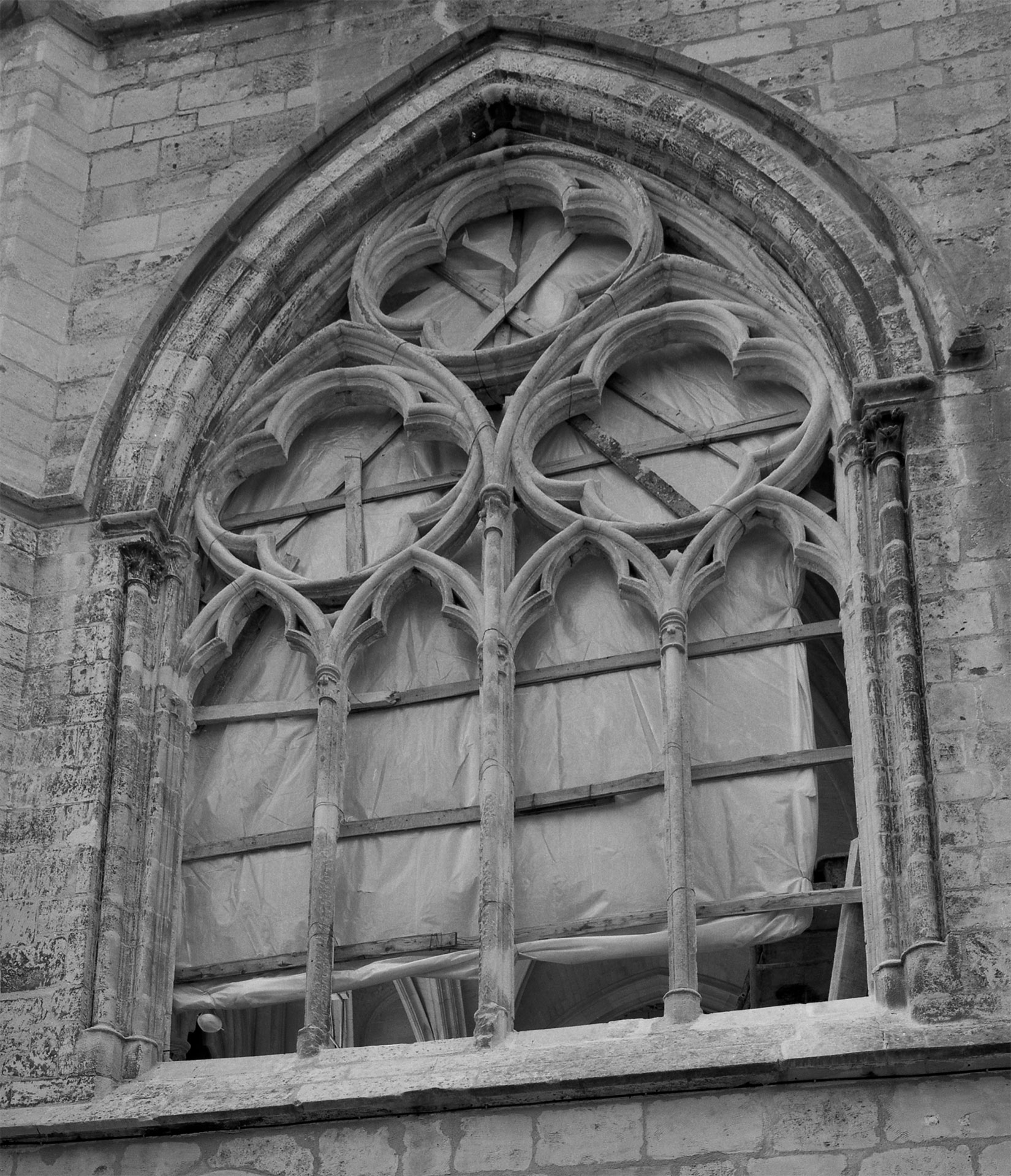Fenêtre quadrilobée de l'étage des tribunes à la façade nord du transept (2018)